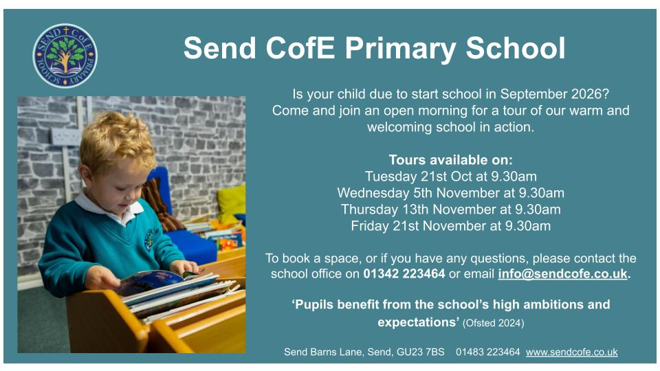Catch up with all the news from Send in our weekly newsletter, the 'Friday Flyer'. If you would like a paper copy of the Friday Flyer, please contact the office who will be happy to help you.